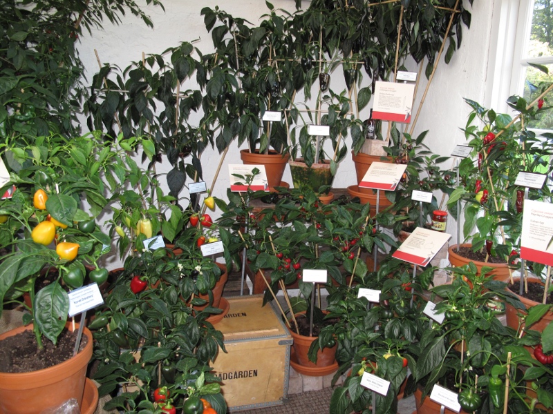After the hot start, we walked around in the orangerie, looking at all the beautiful shapes, colours and styles of chiles. Following is just a few examples.